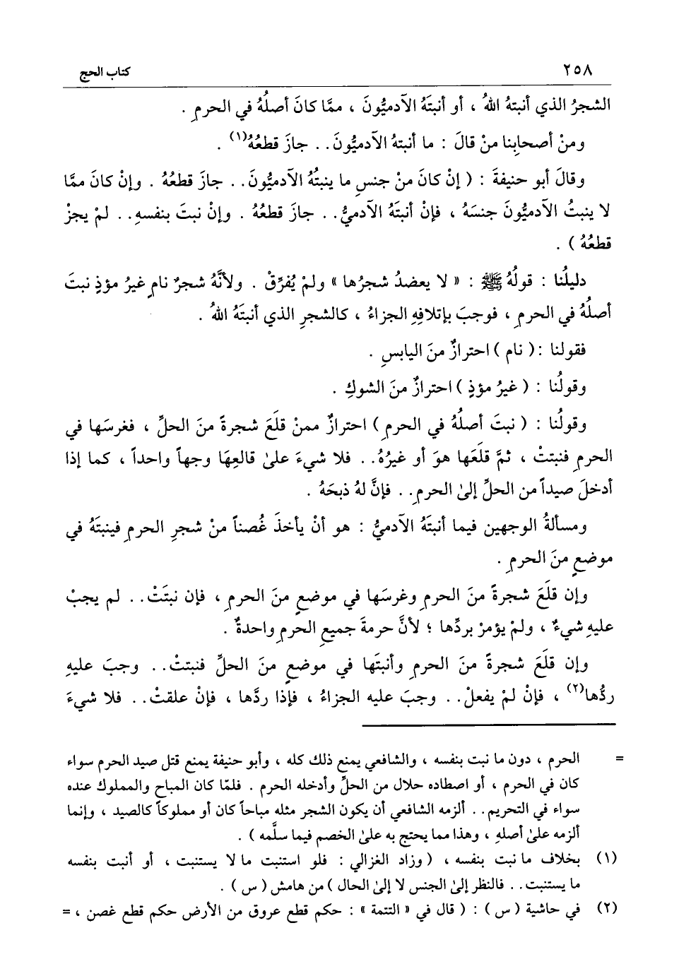 الشجر الذي أنبته الله، أو أنبته الآدميون ... مما كان أصله في الحرم.