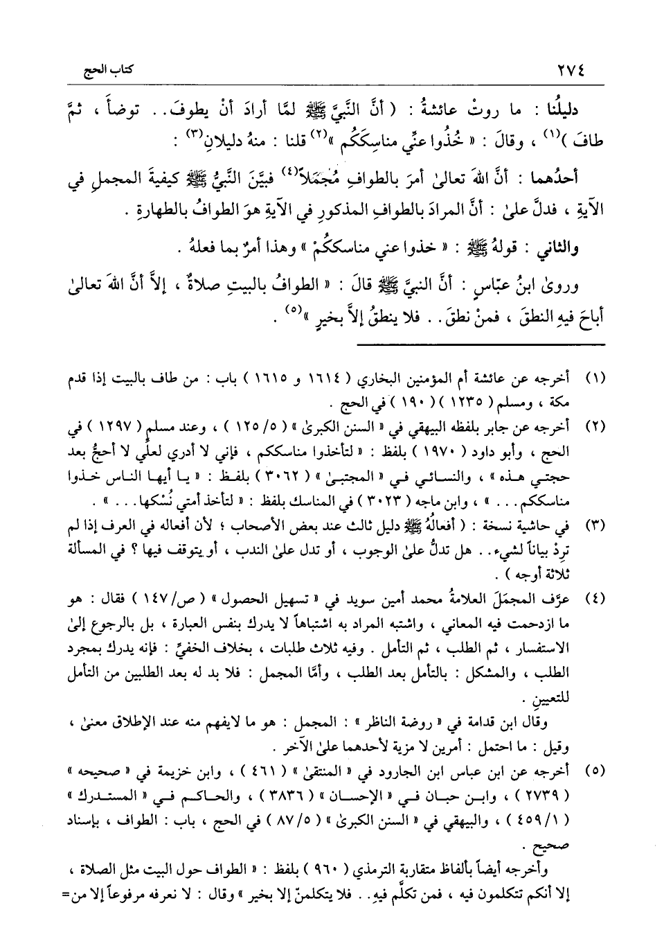 وروى ابن عباس: أن النبي ـ - صَلَّى اللَّهُ عَلَيْهِ وَسَلَّمَ - ـ قال: «الطواف بالبيت صلاة، إلا أن الله تعالى أباح فيه النطق، فمن نطق.. فلا ينطق إلا بخير» .
