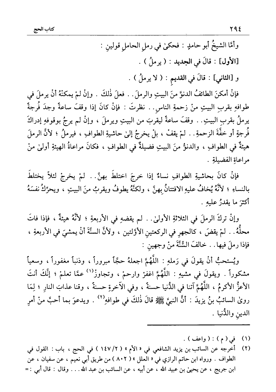 ويستحب أن يقول في رمله: اللهم اجعله حجا مبرورا، وذنبا مغفورا، وسعيا مشكورا. ويقول في مشيه: اللهم اغفر وارحم، وتجاوز عما تعلم؛ إنك أنت الأعز الأكرم، اللهم آتنا في الدنيا حسنة، وفي الآخرة حسنة، وقنا عذاب النار؛ لما روى السائب بن يزيد: أن النبي ـ - صَلَّى اللَّهُ عَلَيْهِ وَسَلَّمَ - ـ قال ذلك في طوافه. ويدعو بما أحب من أمر الدين والدنيا.