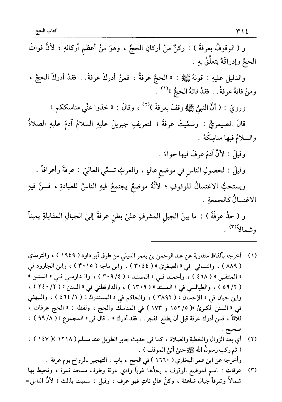 والدليل عليه: قوله ـ - صَلَّى اللَّهُ عَلَيْهِ وَسَلَّمَ - ـ: «الحج عرفة، فمن أدرك عرفة.. فقد أدرك الحج، ومن فاته عرفة.. فقد فاته الحج»