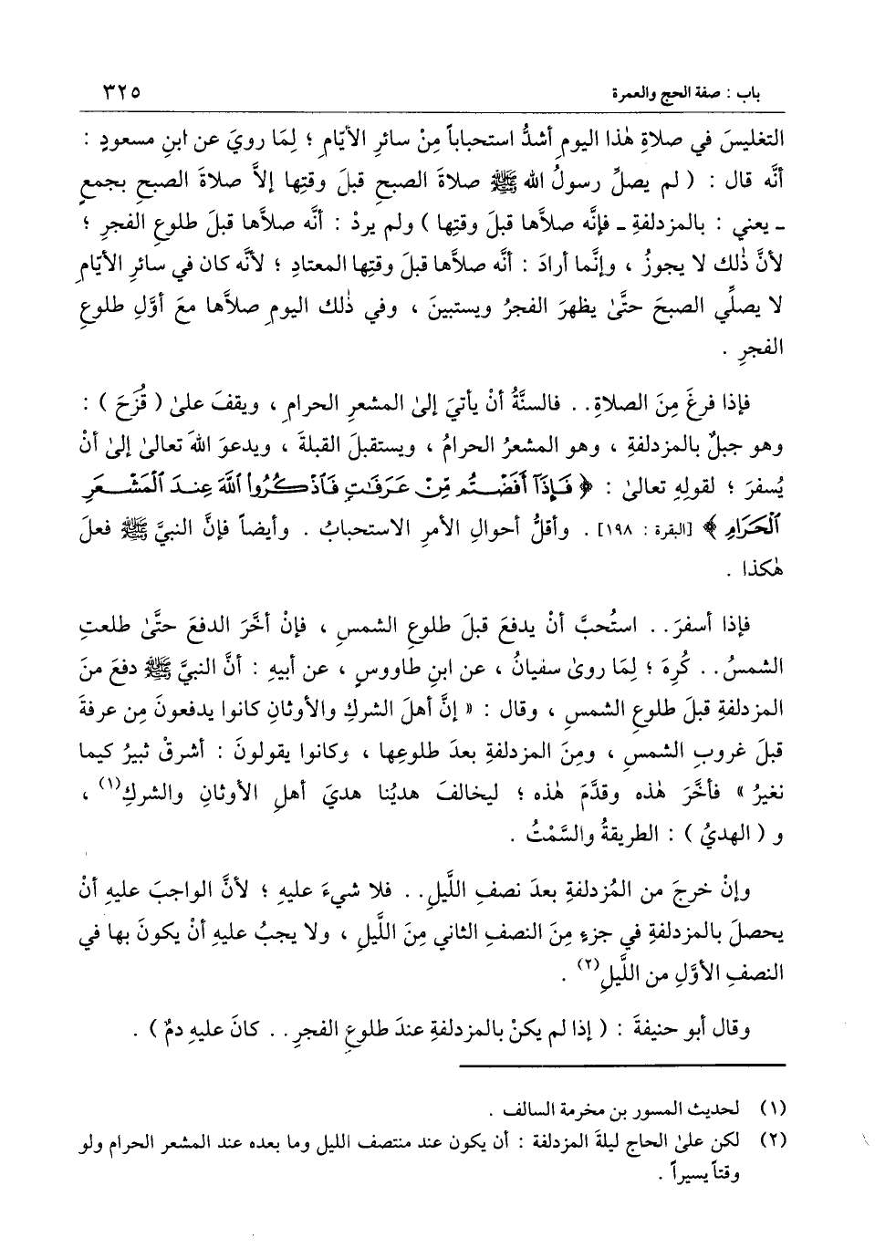فإذا أسفر.. استحب أن يدفع قبل طلوع الشمس، فإن أخر الدفع حتى طلعت الشمس.. كره؛ لما روى سفيان، عن ابن طاووس، عن أبيه: «أن النبي ـ - صَلَّى اللَّهُ عَلَيْهِ وَسَلَّمَ - ـ دفع من المزدلفة قبل طلوع الشمس، وقال: " إن أهل الشرك والأوثان كانوا يدفعون من عرفة قبل غروب الشمس، ومن المزدلفة بعد طلوعها، وكانوا يقولون: أشرق ثبير كيما نغير» فأخر هذه وقدم هذه؛ ليخالف هدينا هدي أهل الأوثان والشرك، و (الهدي) : الطريقة والسمت.