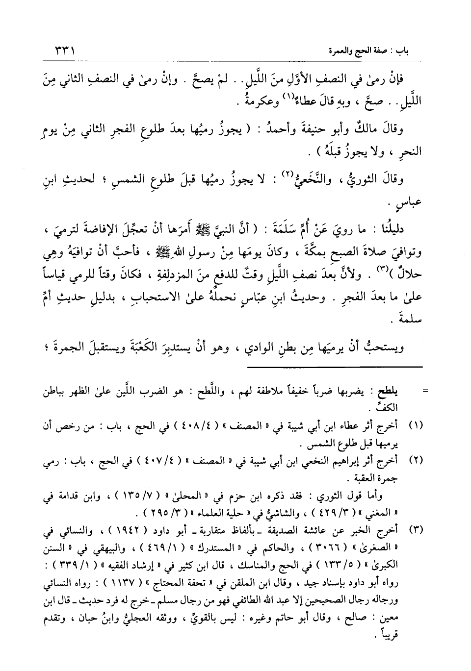 وقال الثوري، والنخعي: لا يجوز رميها قبل طلوع الشمس؛ لحديث ابن عباس.