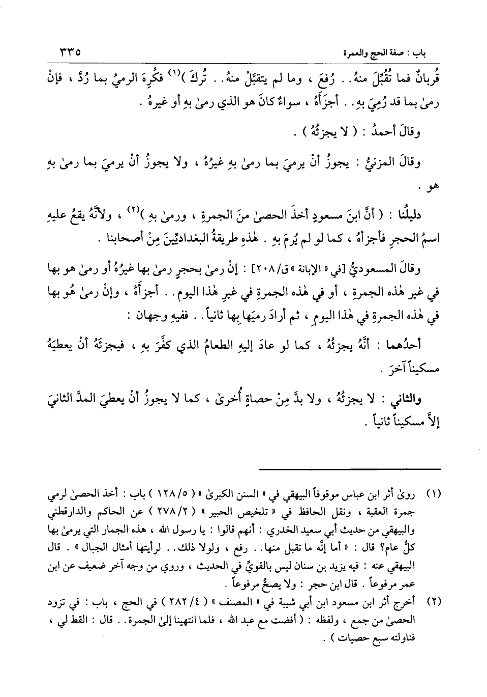 وقال المسعودي [في " الإبانة " ق \ 208] : إذ رمى بحجر رمى بها غيره أو رمى هو بها في غير هذه الجمرة، أو في هذه الجمرة في غير هذا اليوم.. أجزأه، وإن رمى هو بها في هذه الجمرة في هذا اليوم، ثم أراد رميها بها ثانيا.. ففيه وجهان: