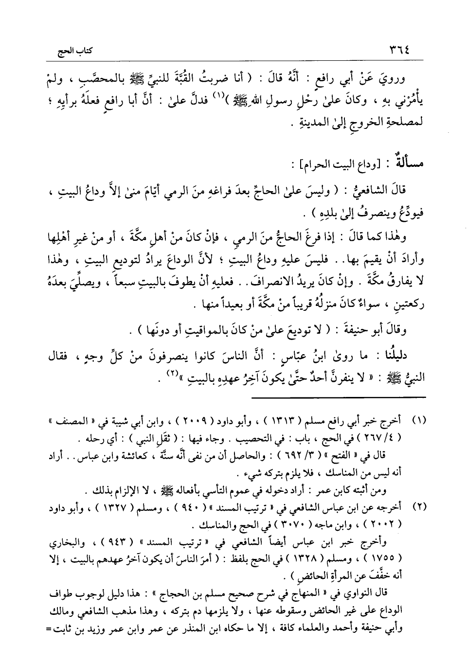 ] : قال الشافعي: (وليس على الحاج بعد فراغه من الرمي أيام منى إلا وداع البيت، فيودع وينصرف إلى بلده) .