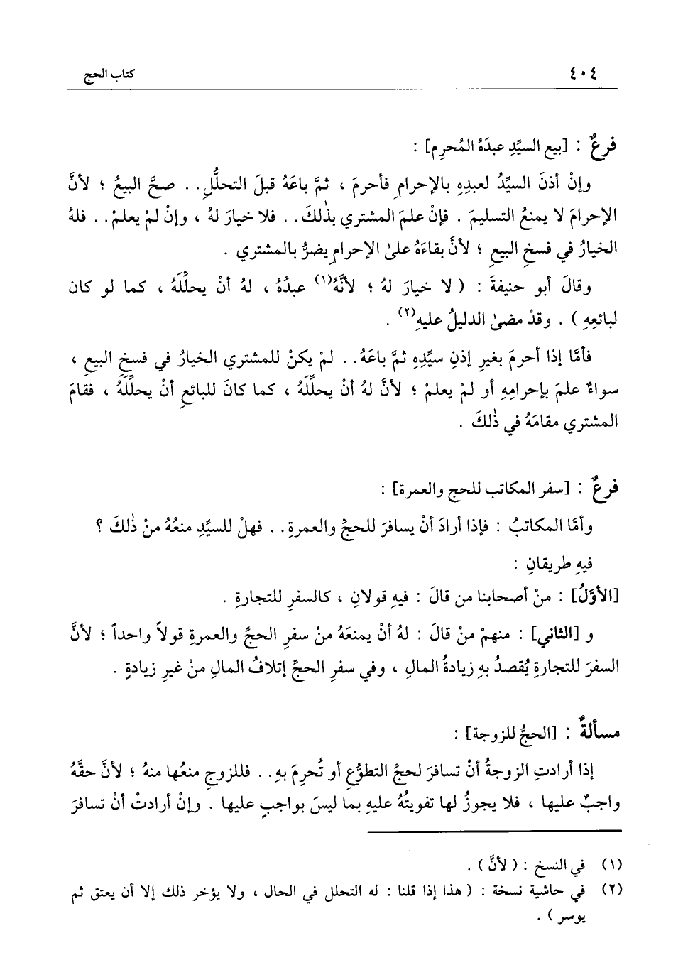 وإن أذن السيد لعبده بالإحرام فأحرم، ثم باعه قبل التحلل صح البيع؛ لأن الإحرام لا يمنع التسليم. فإن علم المشتري بذلك فلا خيار له، وإن لم يعلم فله الخيار في فسخ البيع؛ لأن بقاءه على الإحرام يضر بالمشتري.