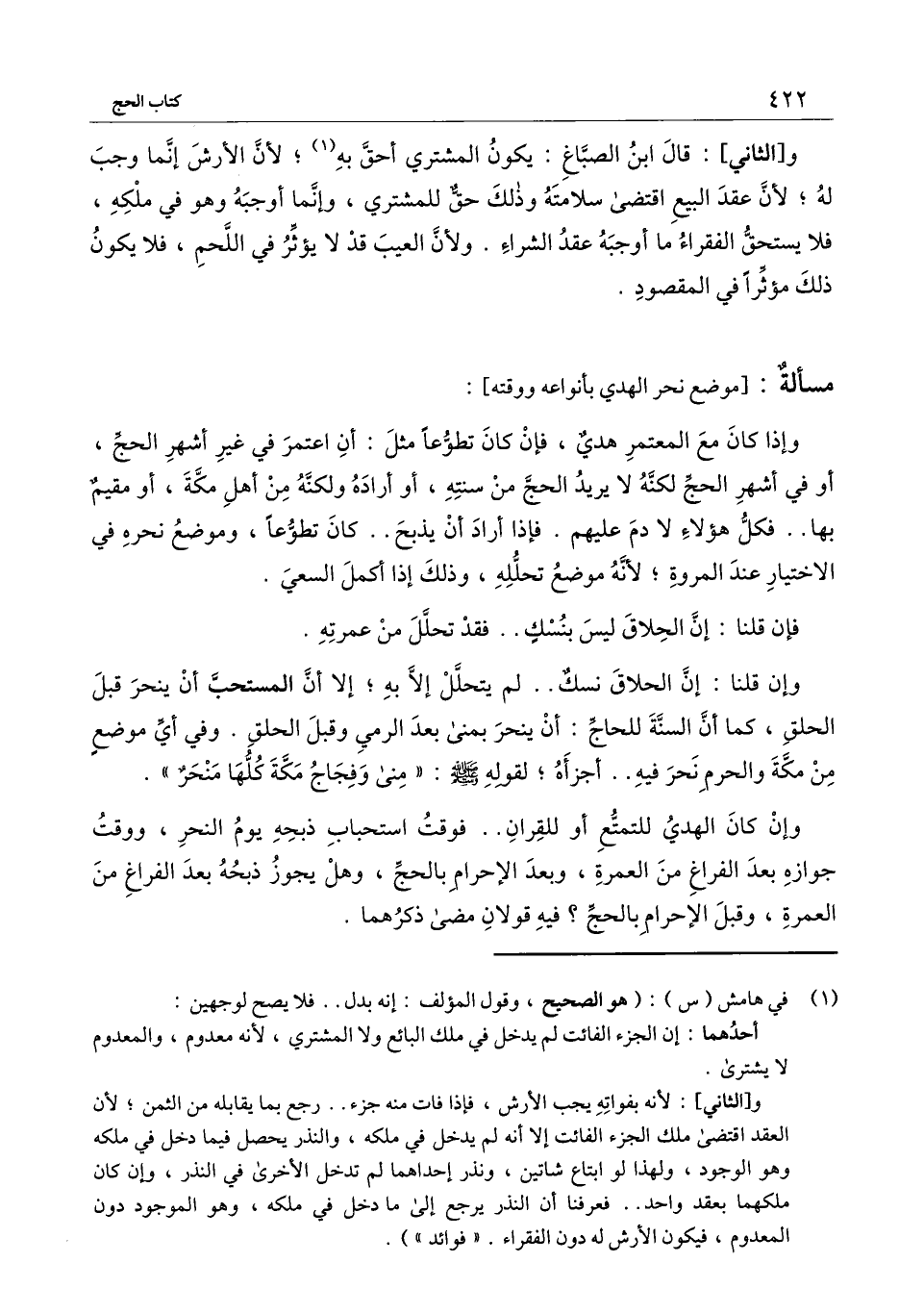 وإن كان الهدي للتمتع أو للقران فوقت استحباب ذبحه يوم النحر، ووقت جوازه بعد الفراغ من العمرة، وبعد الإحرام بالحج، وهل يجوز ذبحه بعد الفراغ من العمرة، وقبل الإحرام بالحج؟ فيه قولان مضى ذكرهما.