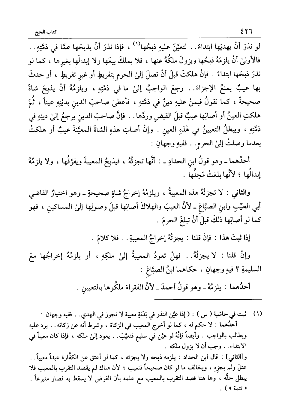 لو نذر أن يهديها ابتداء لتعين عليه ذبحها، فإذا نذر أن يذبحها عما في ذمته فالأولى أن يلزمه ذبحها ويزول ملكه عنها، فلا يملك بيعها ولا إبدالها بغيرها، كما لو نذر ذبحها ابتداء. فإن هلكت قبل أن تصل إلى الحرم بتفريط أو غير تفريط، أو حدث بها عيب يمنع الإجزاء رجع الواجب إلى ما في ذمته، ويلزمه أن يذبح شاة صحيحة، كما نقول فيمن عليه دين في ذمته، فأعطى صاحب الدين بدينه عينا، ثم هلكت العين أو أصابها عيب قبل القبض وردها فإن صاحب الدين يرجع إلى دينه في ذمته، ويبطل التعيين في هذه العين. وإن أصاب هذه الشاة المعينة عيب أو هلكت بعدما وصلت إلى الحرم ففيه وجهان: