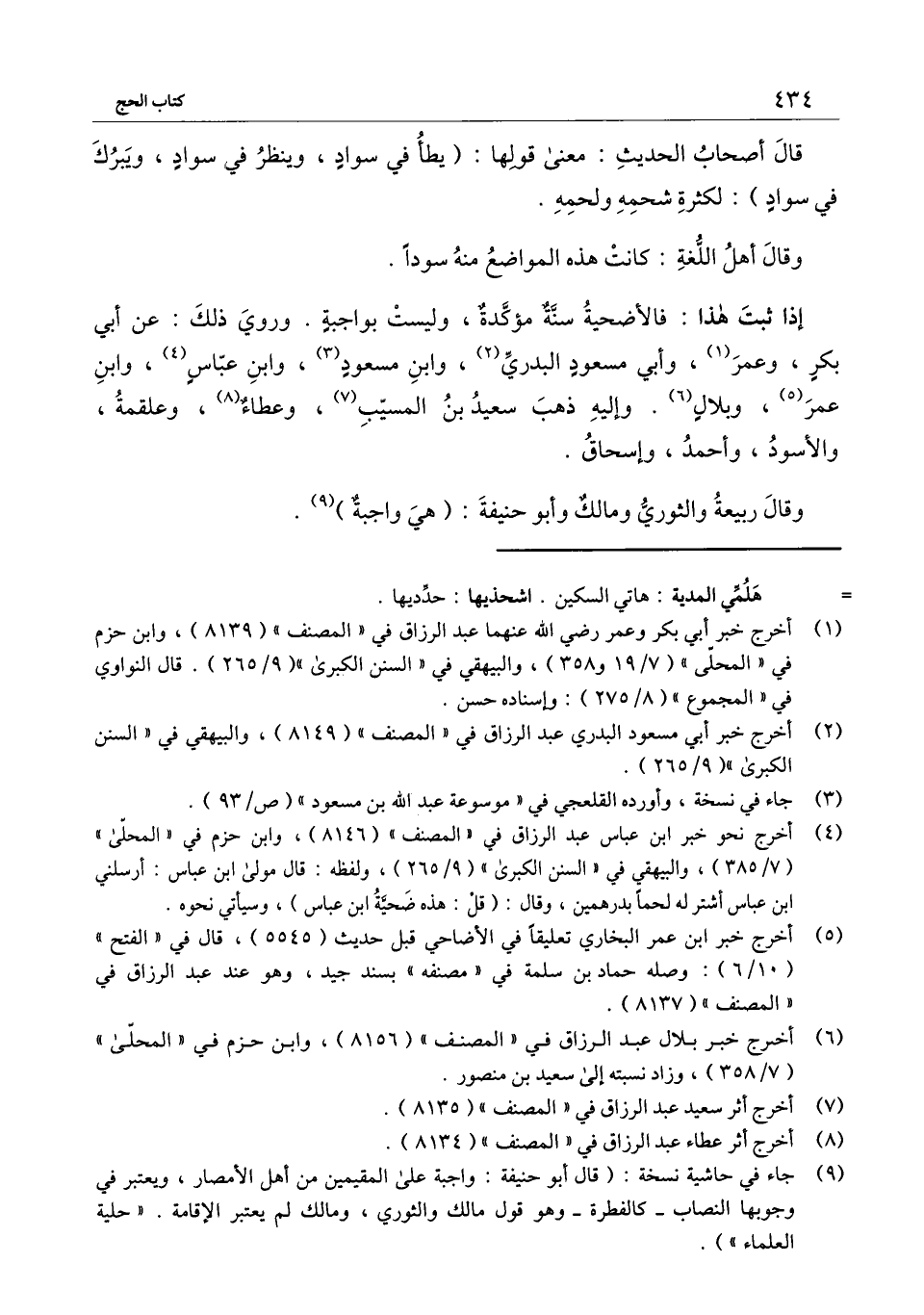 قال أصحاب الحديث: معنى قولها: «يطأ في سواد، وينظر في سواد، ويبرك في سواد» : لكثرة شحمه ولحمه.
