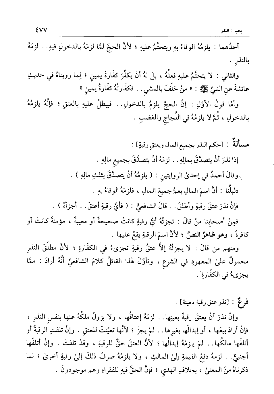 [مسألة حكم النذر بجميع المال وبعتق رقبة]