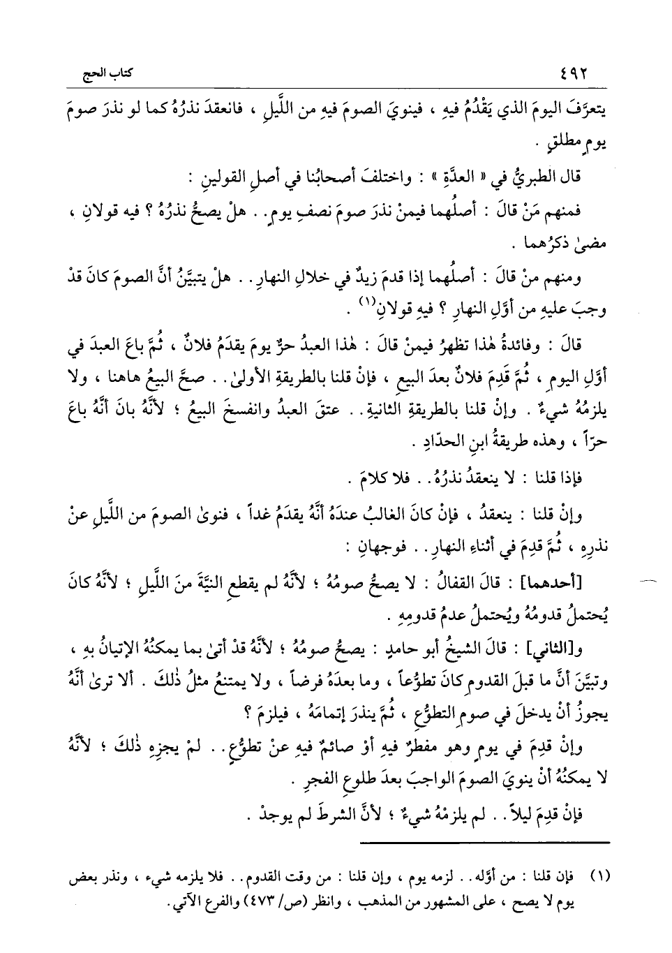 و (الثاني) : قال الشيخ أبو حامد: يصح صومه؛ لأنه قد أتى بما يمكنه الإتيان به، وتبين أن ما قبل القدوم كان تطوعا، وما بعده فرضا، ولا يمتنع مثل ذلك. ألا ترى أنه يجوز أن يدخل في صوم التطوع، ثم ينذر إتمامه، فيلزم، وإن قدم في يوم وهو مفطر فيه أو صائم فيه عن تطوع لم يجزه ذلك؛ لأنه لا يمكنه أن ينوي الصوم الواجب بعد طلوع الفجر.