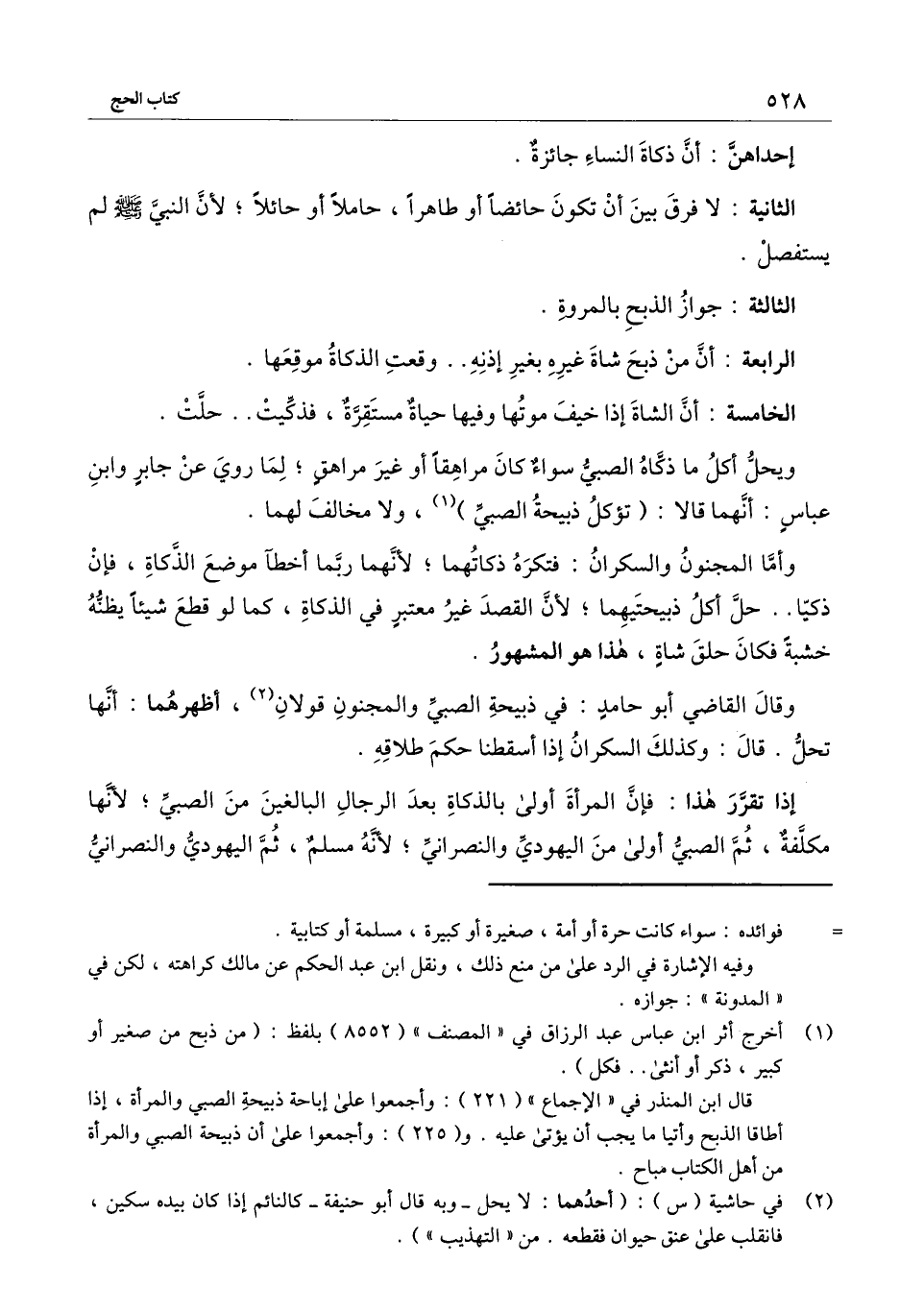 إحداهن: أن ذكاة النساء جائزة.