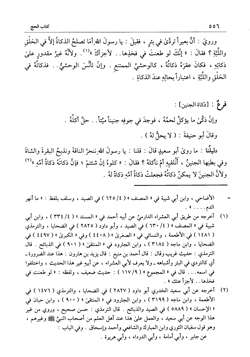 وإن ذكى ما يؤكل لحمه، فوجد في جوفه جنينا ميتا.. حل أكله.