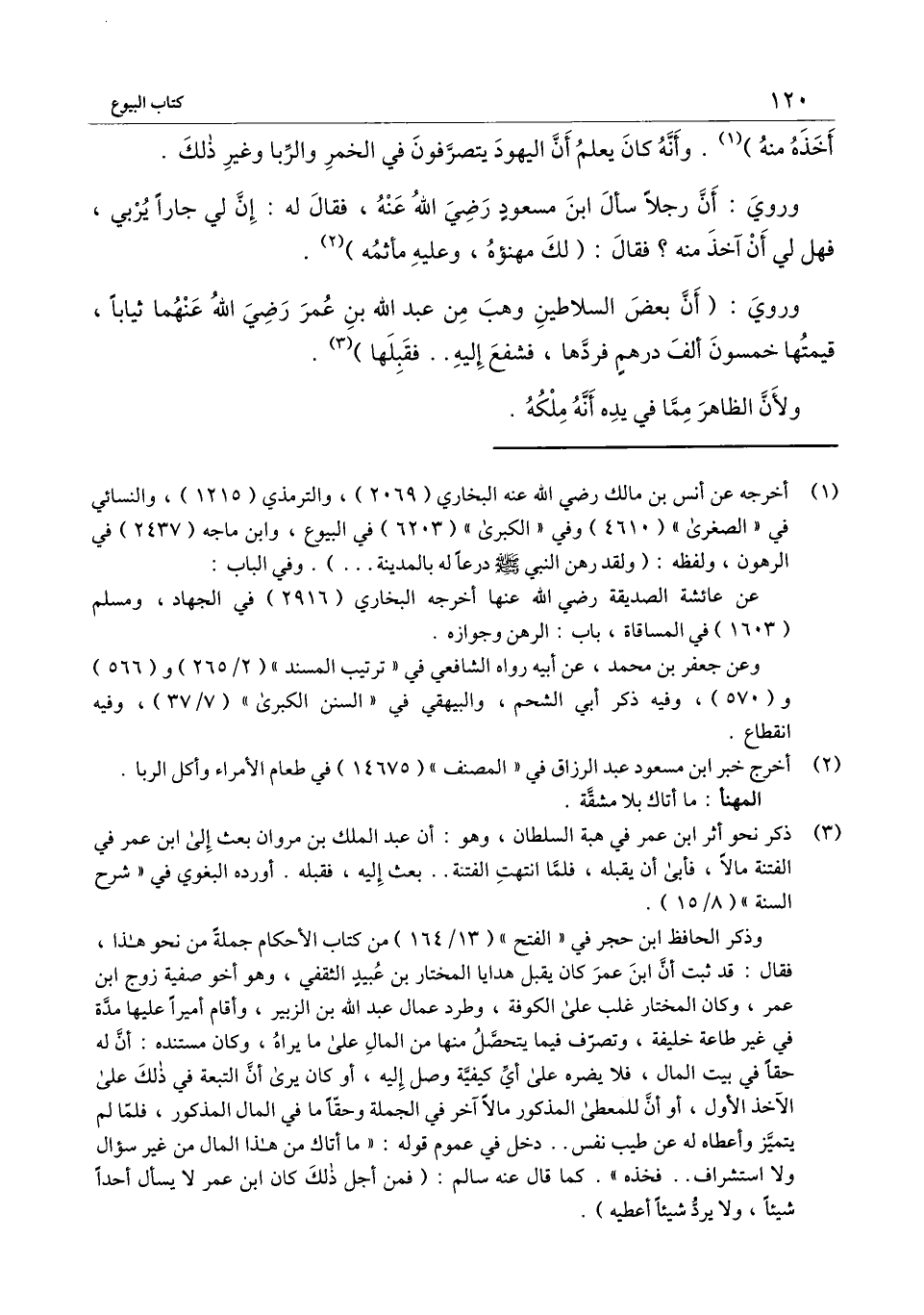 أخذه منه» . وأنه كان يعلم أن اليهود يتصرفون في الخمر والرّبا وغير ذلك.