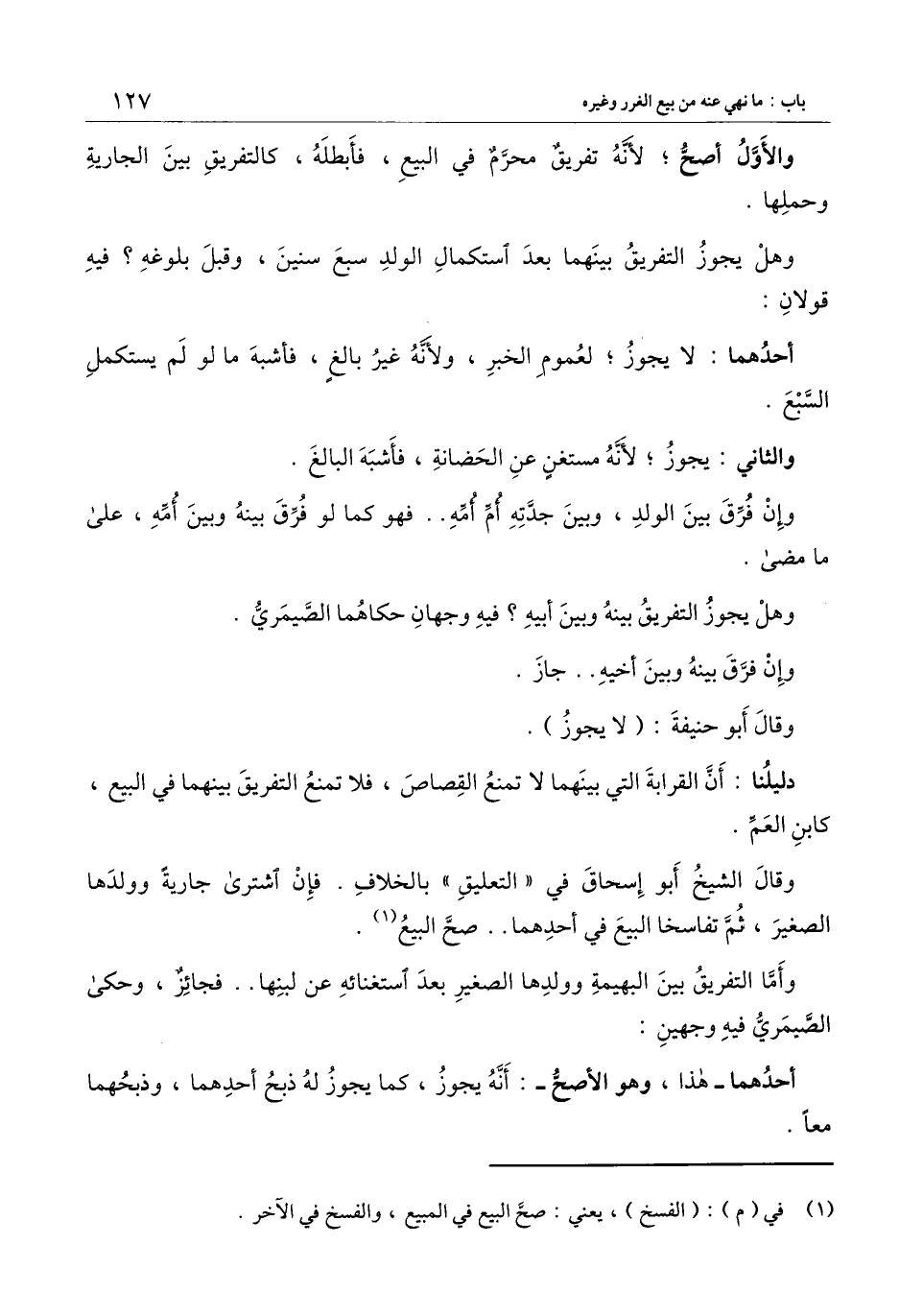 وقال الشيخ أبو إسحاق في " التعليق " بالخلاف. فإن اشترى جارية وولدها الصغير، ثم تفاسخا البيع في أحدهما.. صح البيع.