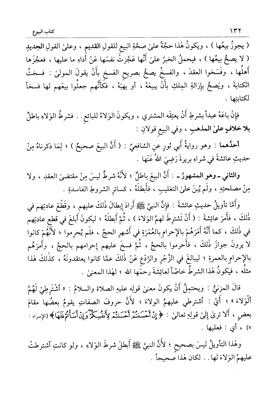 قال المزني: ويحتمل أن يكون معنى قوله - عَلَيْهِ الصَّلَاةُ وَالسَّلَامُ -: «اشترطي لهم الولاء» ؛ أي: اشترطي عليهم الولاء؛ لأن حروف الصفات يقوم بعضها مقام بعض، ألا ترى إلى قَوْله تَعَالَى: {إِنْ أَحْسَنْتُمْ أَحْسَنْتُمْ لأَنْفُسِكُمْ وَإِنْ أَسَأْتُمْ فَلَهَا} [الإسراء: 7] [الإسراء: 7] ، أي: فعليها.