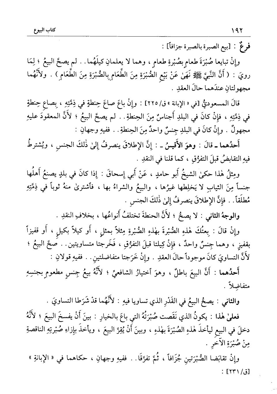 قال المسعودي [في " الإبانة " [ق\225] : وإن باع صاع حنطة في ذمته، بصاع حنطة في ذمته، فإن كان في البلد أجناس من الحنطة.. لم يصح البيع؛ لأن المعقود عليه مجهول. وإن كان في البلد جنس واحد من الحنطة.. ففيه وجهان: