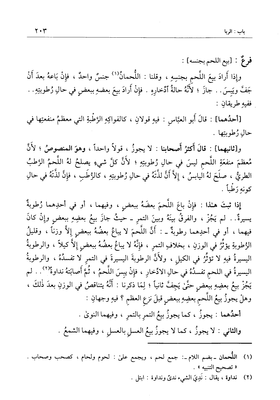 [فرعٌ: بيع اللحم بجنسه]