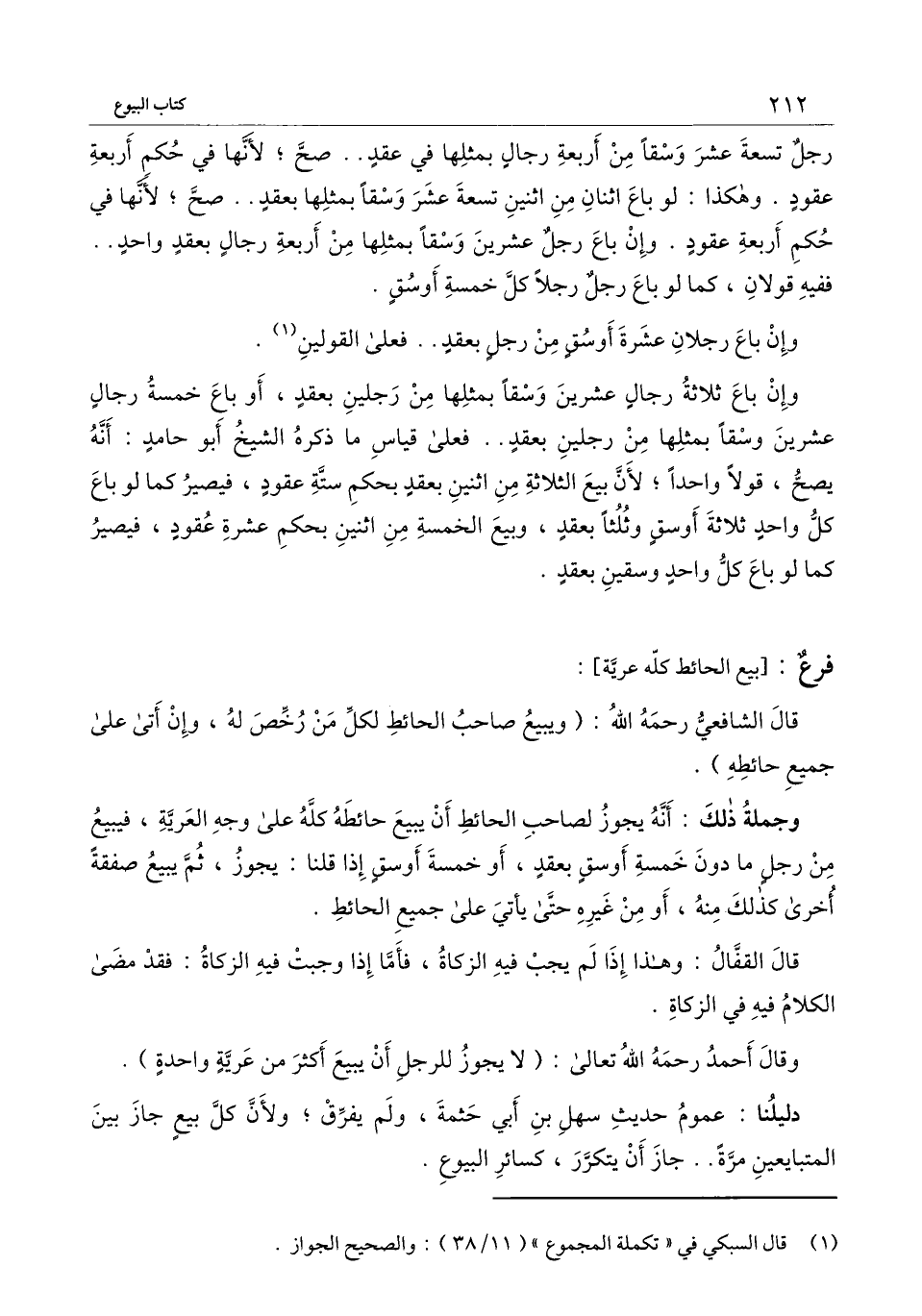 رجل تسعة عشر وسقا من أربعة رجال بمثلها في عقد.. صح؛ لأنها في حكم أربعة عقود. وهكذا: لو باع اثنان من اثنين تسعة عشر وسقا بمثلها بعقد.. صحّ؛ لأنها في حكم أربعة عقود. وإن باع رجل عشرين وسقا بمثلها من أربعة رجال بعقد واحد.. ففيه قولان، كما لو باع رجل رجلاً كلّ خمسة أوسق.