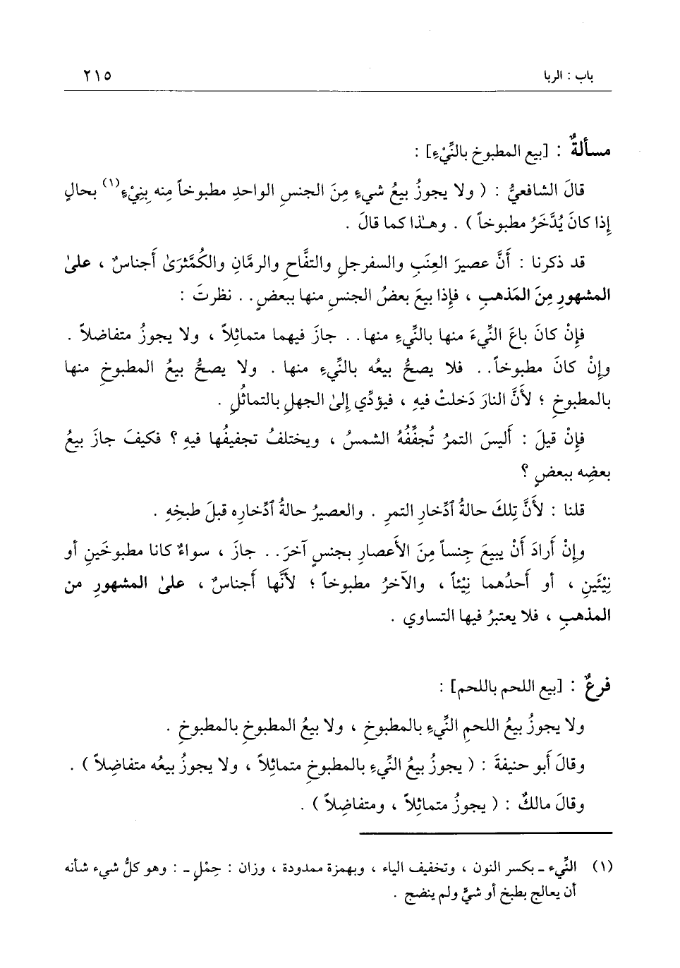 [مسألة: بيع المطبوخ بالنِّيء]