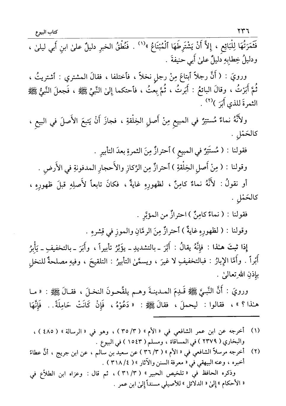 وروي: «أن رجلاً ابتاع من رجل نخلا، فاختلفا، فقال المشتري: اشتريت، ثم أبرت، وقال البائع: أبرت، ثم بعت، فاحتكما إلى النبي - صَلَّى اللَّهُ عَلَيْهِ وَسَلَّمَ -، فجعل النبي - صَلَّى اللَّهُ عَلَيْهِ وَسَلَّمَ - الثمرة للذي أبر» .