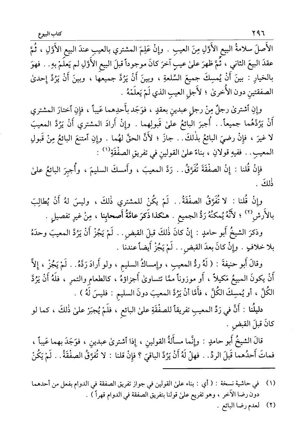 وإن اشترى رجل من رجل عبدين بعقد، فوجد بأحدهما عيبًا، فإن اختار المشتري أن يردهما جميعًا.. أجبر البائع على قبولهما. وإن أراد المشتري أن يرد المعيب لا غير، فإن رضي البائع بذلك.. جاز؛ لأن الحق لهما. وإن امتنع البائع من قبول المعيب.. ففيه قولان، بناء على القولين في تفريق الصفقة: