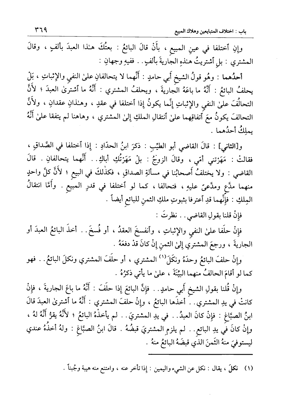 و [الثاني] : قال القاضي أبو الطيب: ذكر ابن الحداد: إذا اختلفا في الصداق، فقالت: مهرتني أمّي، وقال الزوج: بل مهرتك أباك.. أنهما يتحالفان.. قال القاضي: ولا يختلف أصحابنا في مسألة الصداق، فكذلك في البيع؛ لأن كل واحد منهما مدّع ومدّعى عليه، فتحالفا، كما لو اختلفا في قدر المبيع. وأمّا انتقال الملك: فإنهما قد اعترفا بثبوت ملك الثمن للبائع أيضًا.