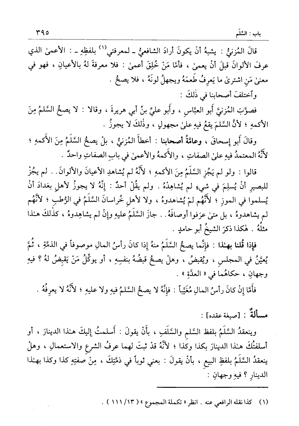 فصوَّب المُزنيَّ أبو العبَّاس، وأبو عليّ بن أبي هريرة، وقالا: لا يصح السلم من الأكمه؛ لأن السلم يقع فيه على مجهول، وذلك لا يجوز.