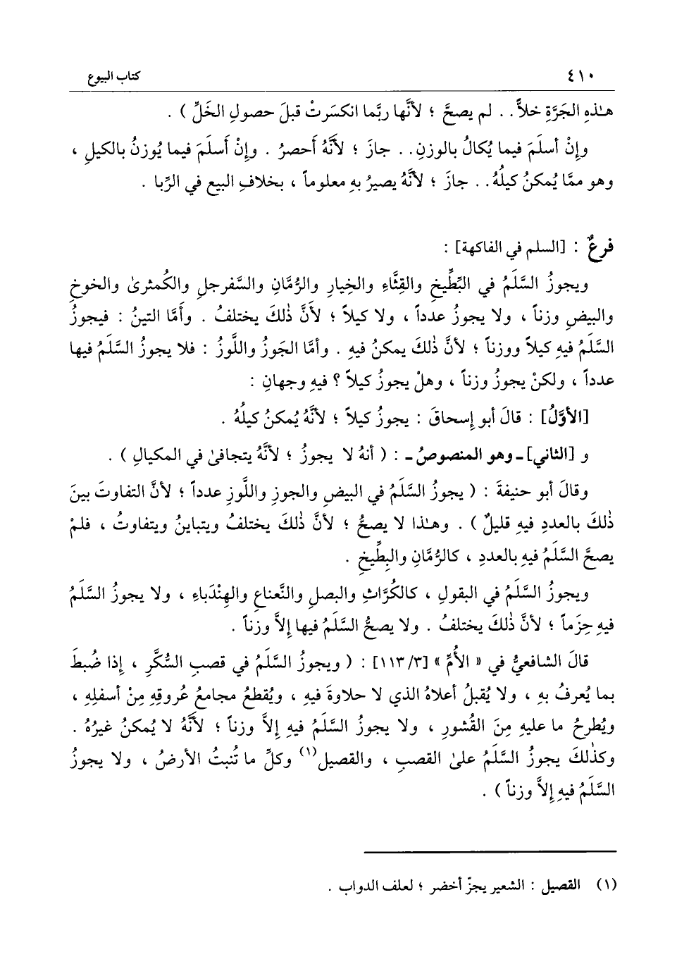وكذلك يجوز السلم على القصب، والقصيل وكلِّ ما تنبت الأرض، ولا يجوز السلم فيه إلاَّ وزنًا) .