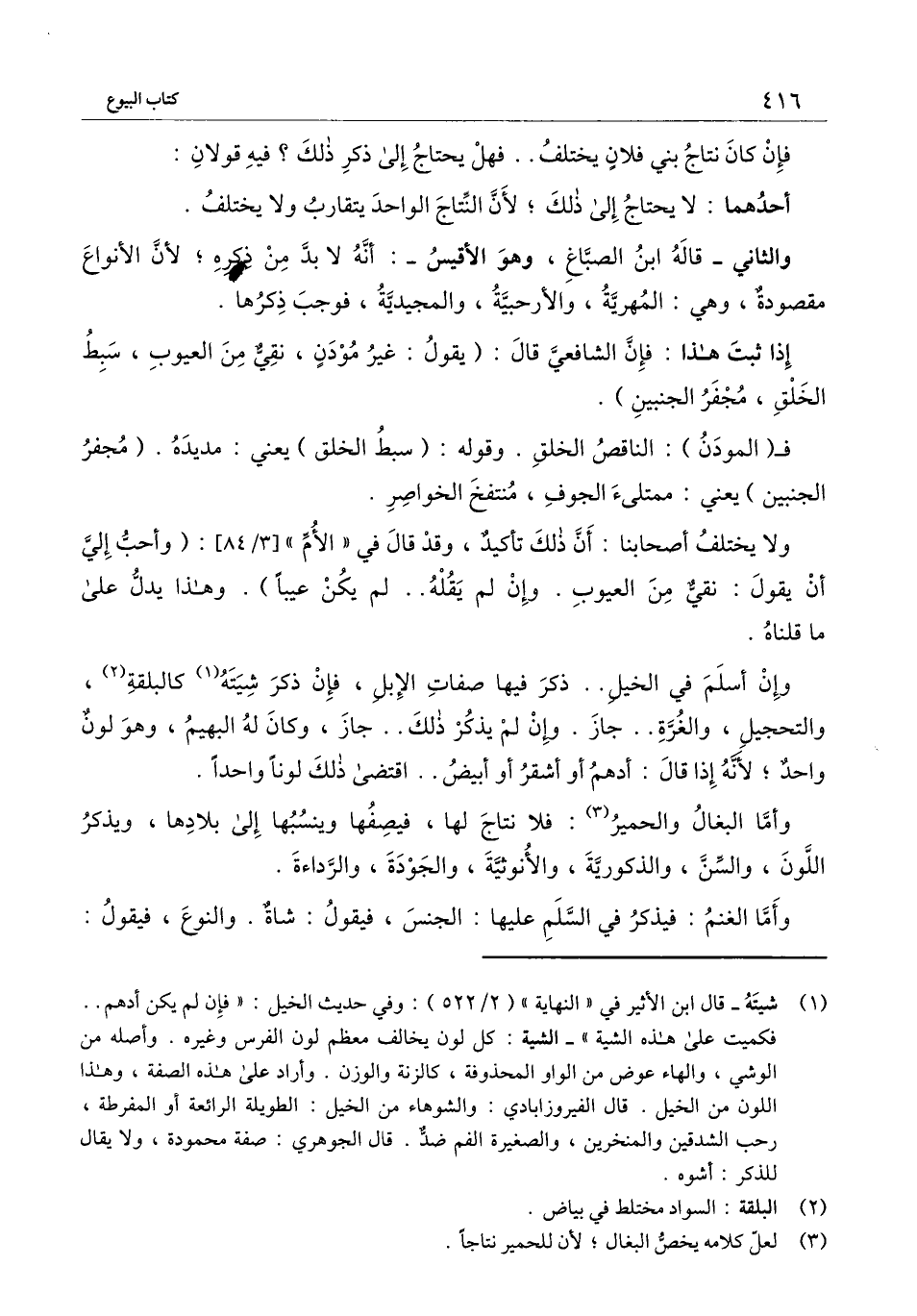فإن كان نتاج بني فلان يختلف.. فهل يحتاج إلى ذكر ذلك؟ فيه قولان: أحدهما: لا يحتاج إلى ذلك؛ لأن النِّتاج الواحد يتقارب ولا يختلف.