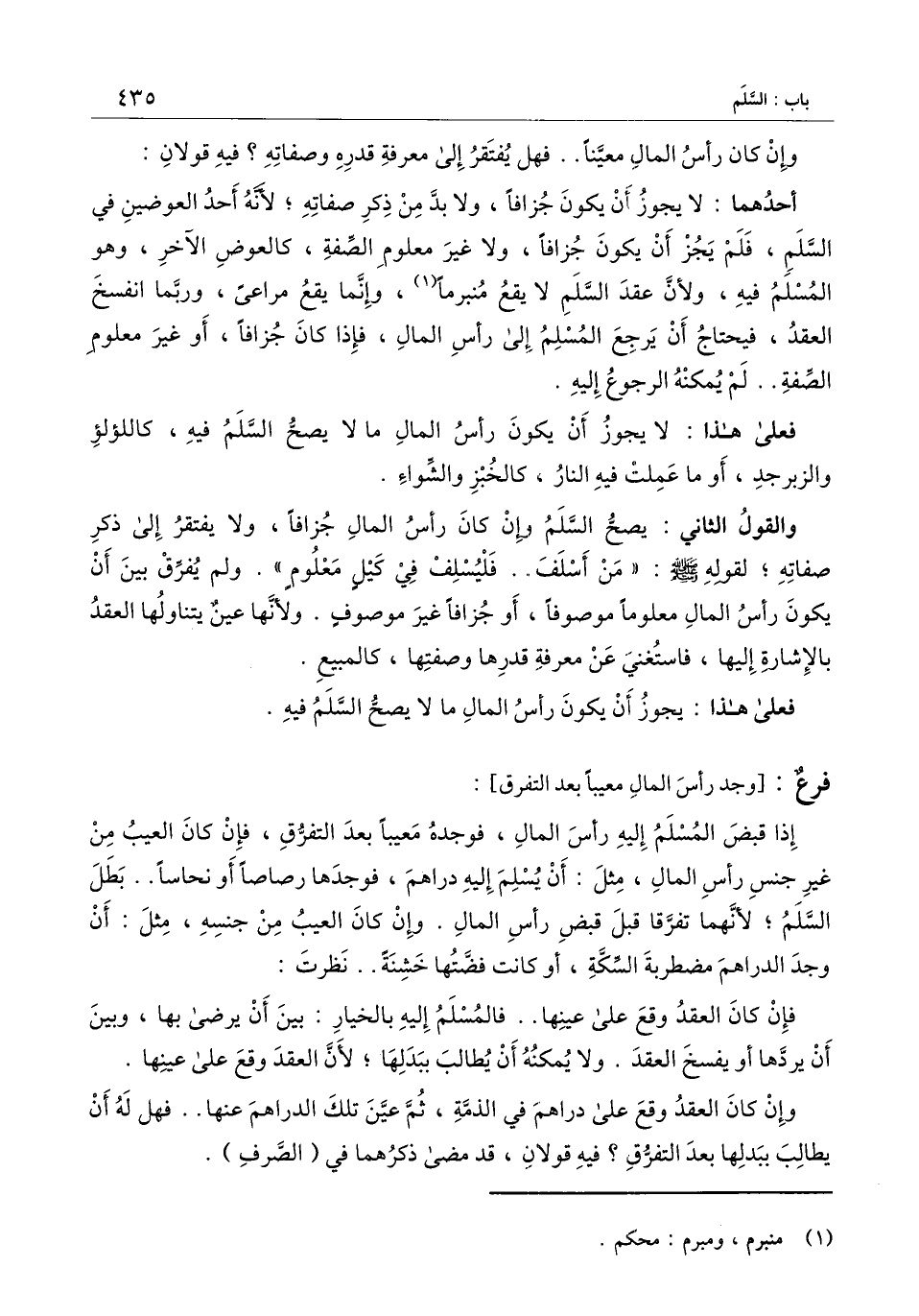 والقول الثاني: يصح السلم وإن كان رأس المال جزافًا، ولا يفتقر إلى ذكر صفاته؛ لقوله - صَلَّى اللَّهُ عَلَيْهِ وَسَلَّمَ -: «من أسلف.. فليسلف في كيل معلوم» . ولم يفرق بين أن يكون رأس المال معلومًا موصوفًا، أو جزافًا غير موصوف. ولأنها عين يتناولها العقد بالإشارة إليها، فاستغني عن معرفة قدرها وصفتها، كالبيع.