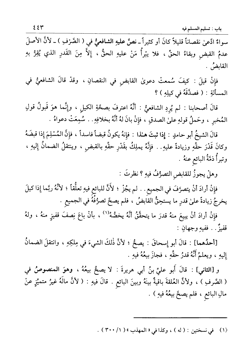 قال الشيخ أبو حامد: إذا ثبت هذا: فإنه يكون قبضًا فاسدًا، فإن المسلم إذا قبضه وكان قدر حقِّه وزيادة عليه.. فإنه يملك بقدر حقه بالقبض، وينتقل الضمان إليه، وتبرأ ذمة البائع عنه.