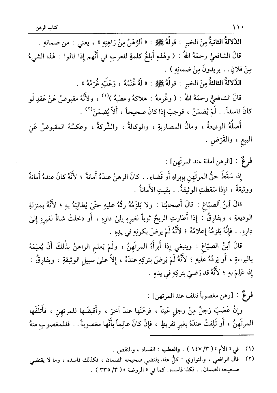 قال الشافعي - رَحِمَهُ اللَّهُ -: (وهذه أبلغ كلمة للعرب في أنهم إذا قالوا: هذا الشيء من فلان.. يريدون من ضمانه) .