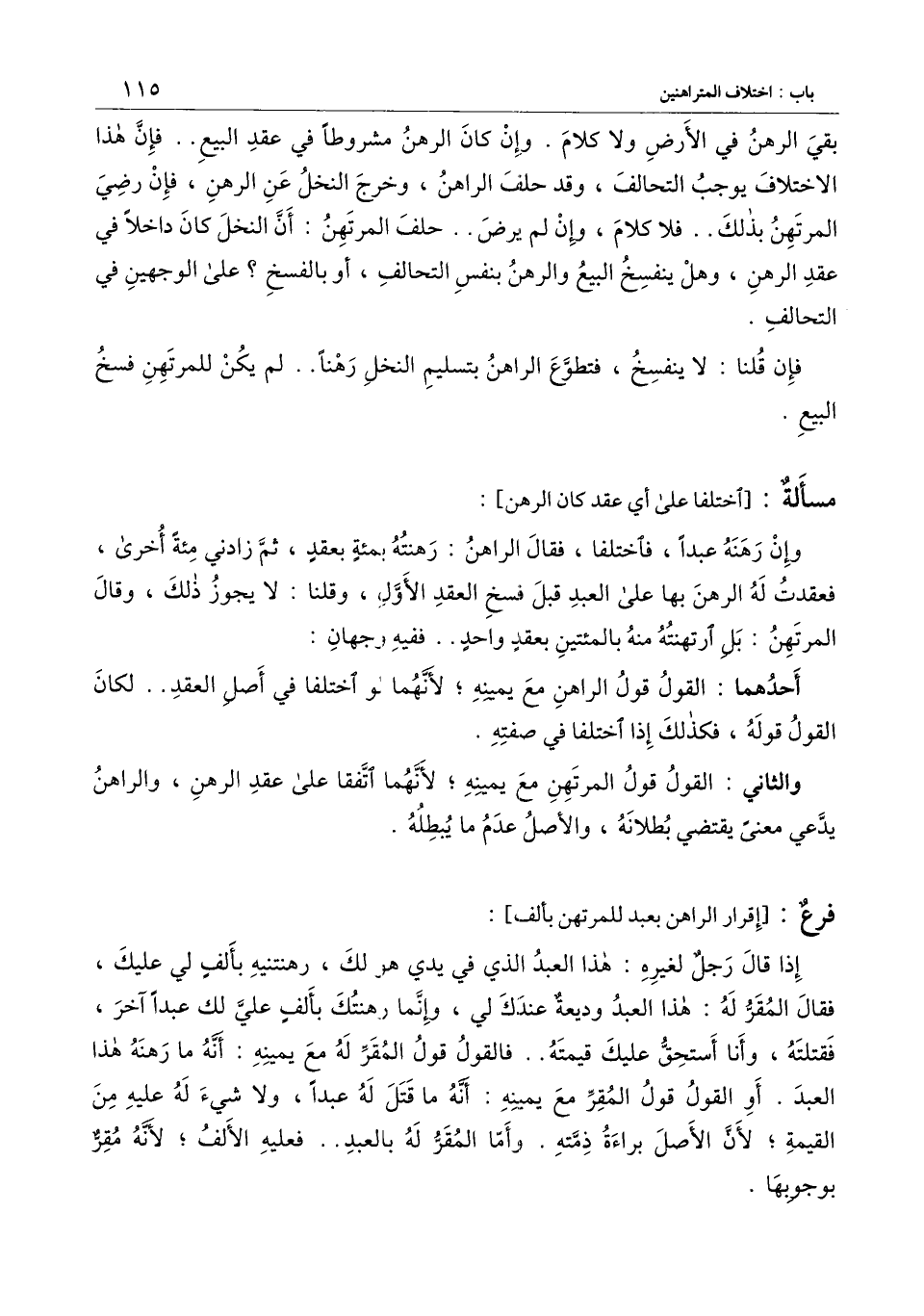 إذا قال رجل لغيره: هذا العبد الذي في يدي هو لك، رهنتنيه بألف لي عليك، فقال المقر له: هذا العبد وديعة عندك لي، وإنما رهنتك بألف عليّ لك عبدا آخر، فقتلته، وأنا أستحق عليك قيمته.. فالقول المقر له مع يمينه: أنه ما رهنه هذا العبد. أو القول قول المقر مع يمينه: أنه ما قتل له عبدا، ولا شيء له عليه من القيمة؛ لأن الأصل براءة ذمته. وأما المقر له بالعبد.. فعليه الألف؛ لأنه مقر بوجوبها.