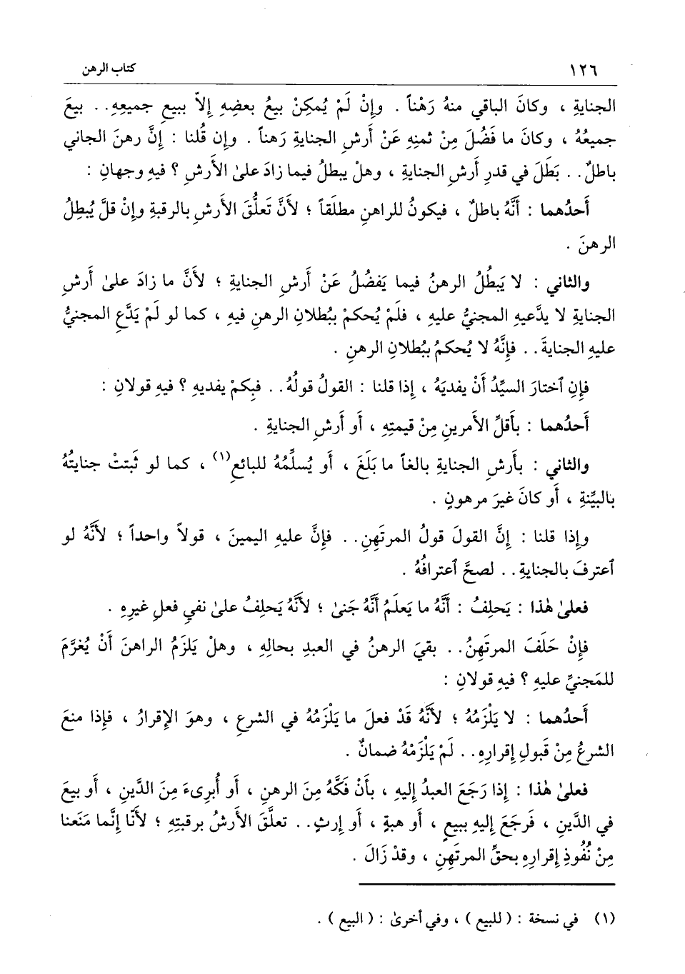 والثاني: لا يبطل الرهن فيما يفضل عن أرش الجناية؛ لأن ما زاد على أرش الجناية لا يدعيه المجني عليه، فلم يحكم ببطلان الرهن فيه، كما لو لم يدع المجني عليه الجناية.. فإنه لا يحكم ببطلان الرهن.