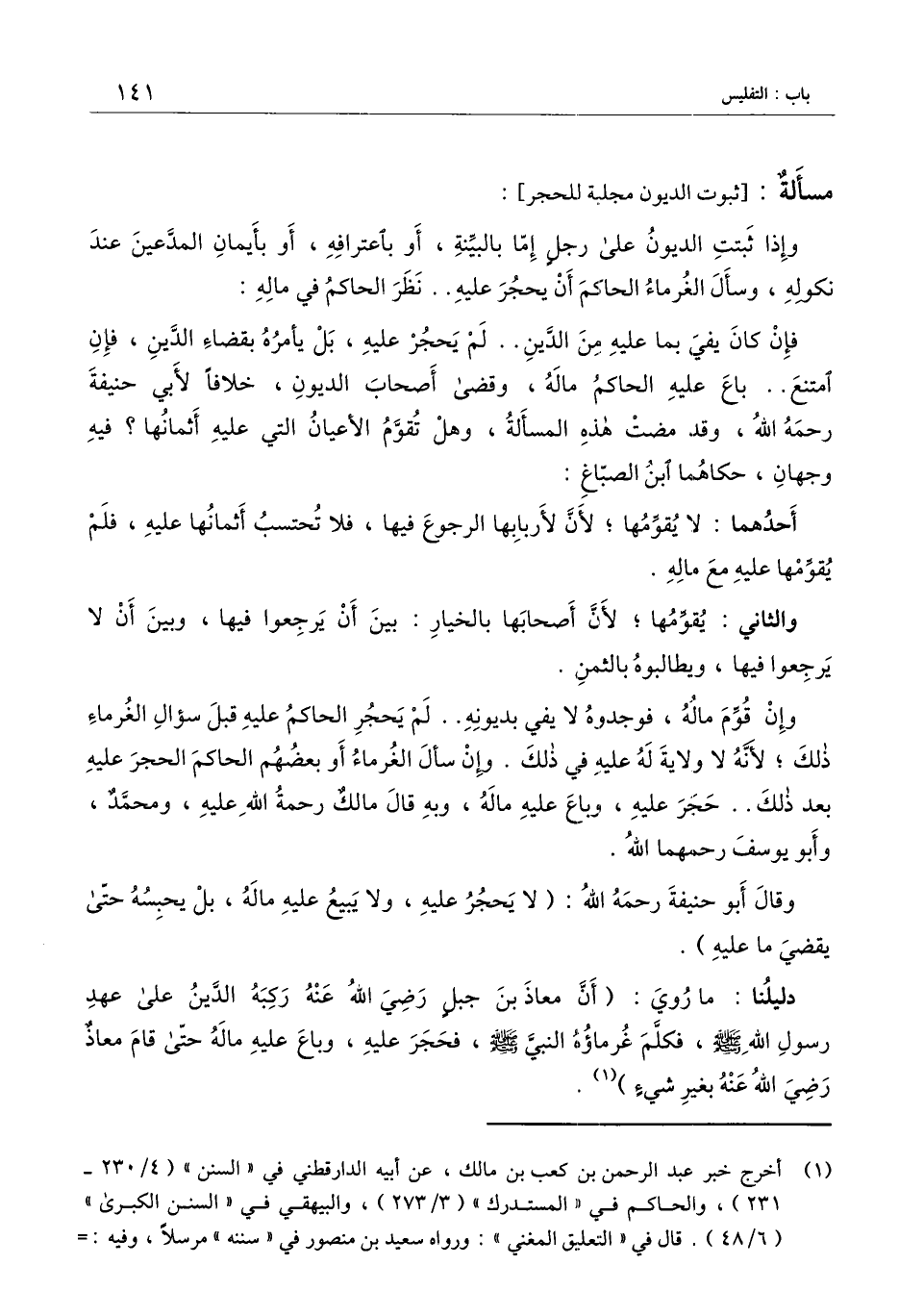 ] : وإذا ثبتت الديون على رجل إما بالبينة، أو باعترافه، أو بأيمان المدعين عند نكوله، وسأل الغرماء الحاكم أن يحجر عليه.. نظر الحاكم في ماله: