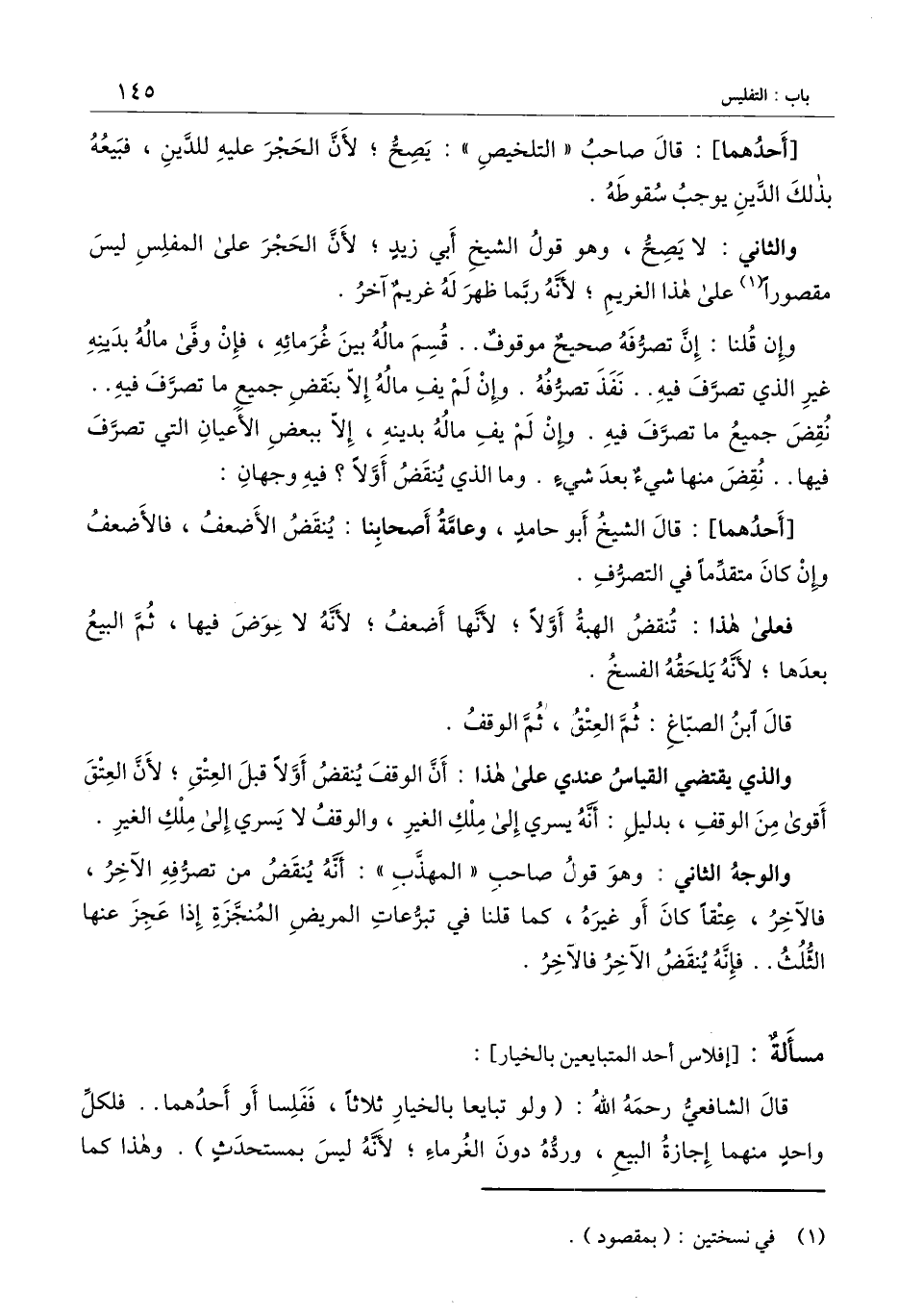 ] : قال الشافعي - رَحِمَهُ اللَّهُ -: (ولو تبايعا بالخيار ثلاثا، ففلسا أو أحدهما.. فلكل واحد منهما إجازة البيع، ورده دون الغرماء؛ لأنه ليس بمستحدث) . وهذا كما