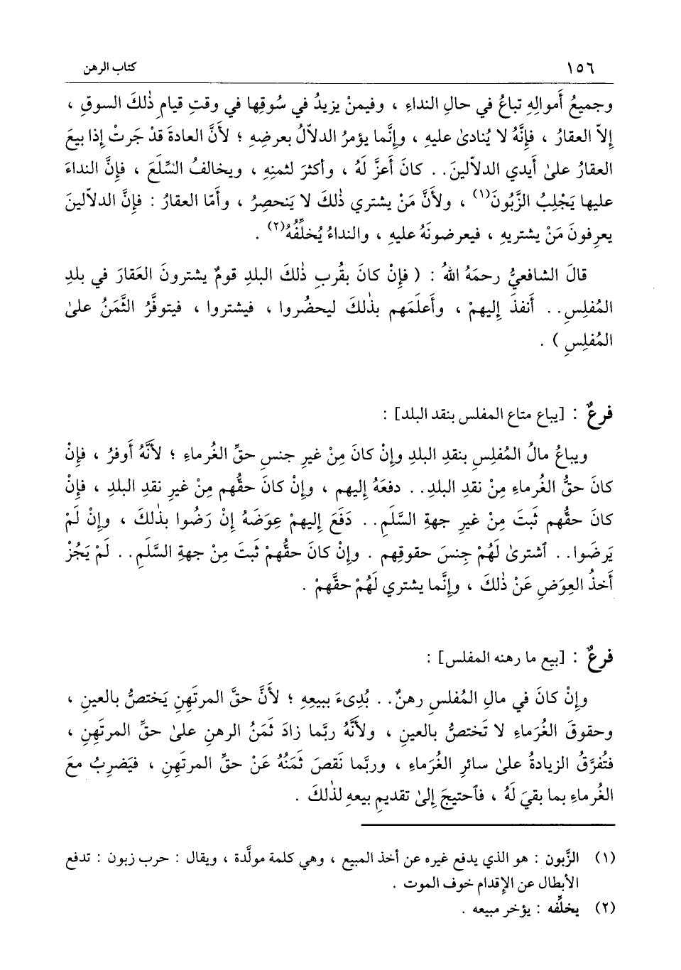 ] : ويباع مال المفلس بنقد البلد وإن كان من غير جنس حق الغرماء؛ لأنه أوفر، فإن كان حق الغرماء من نقد البلد.. دفعه إليهم، وإن كان حقهم من غير نقد البلد، فإن كان حقهم ثبت من غير جهة السلم.. دفع إليهم عوضه إن رضوا بذلك، وإن لم يرضوا.. اشترى لهم جنس حقوقهم. وإن كان حقهم ثبت من جهة السلم.. لم يجز أخذ العوض عن ذلك، وإنما يشتري لهم حقهم.