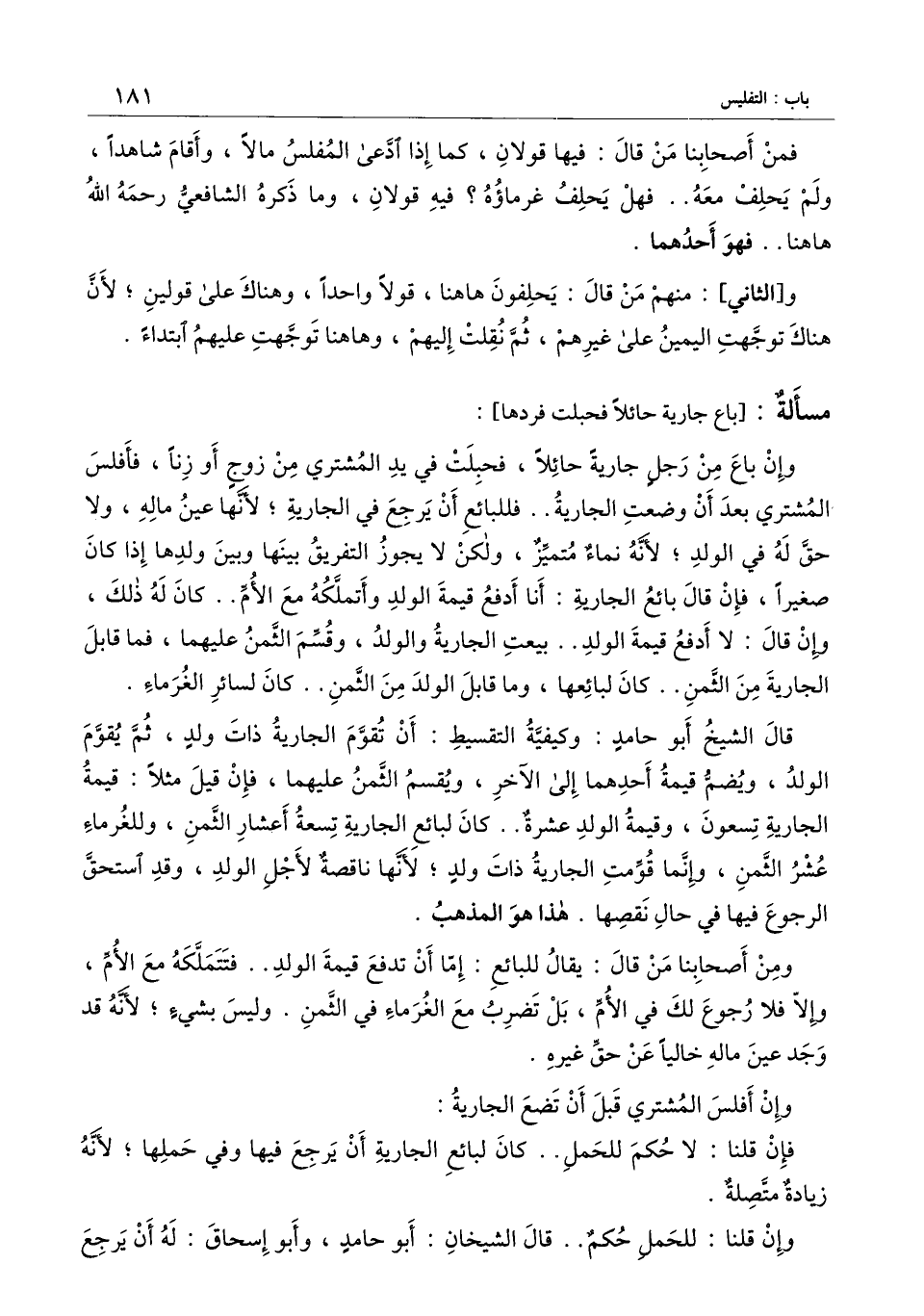 ومن أصحابنا من قال: يقال للبائع: إما أن تدفع قيمة الولد.. فتتملكه مع الأم، وإلا فلا رجوع لك في الأم، بل تضرب مع الغرماء في الثمن.. وليس بشيء؛ لأنه قد وجد عين ماله خاليا عن حق غيره.