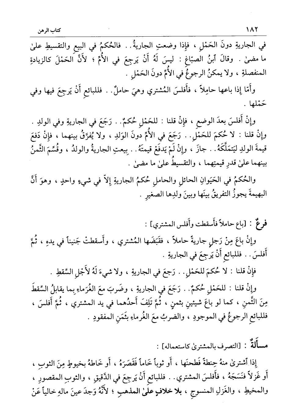 في الجارية دون الحمل، فإذا وضعت الجارية.. فالحكم في البيع والتقسيط على ما مضى. وقال ابن الصباغ: ليس له أن يرجع في الأم؛ لأن الحمل كالزيادة المنفصلة، ولا يمكن الرجوع في الأم دون الحمل.