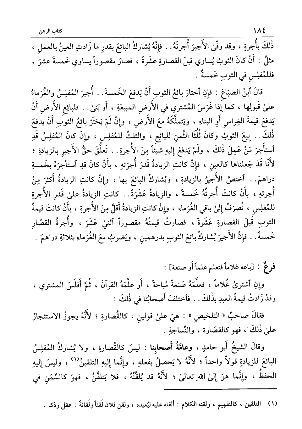وقال الشيخ أبو حامد، وعامة أصحابنا: ليس كالقصارة، ولا يشارك المفلس البائع للزيادة قولا واحدا؛ لأنه لا يحصل بفعله، وإنما إليه التلقين، وليس إليه الحفظ، وإنما هو إلى الله تعالى؛ لأنه قد يلقنه، فلا يتلقن، فهو كالسمن في