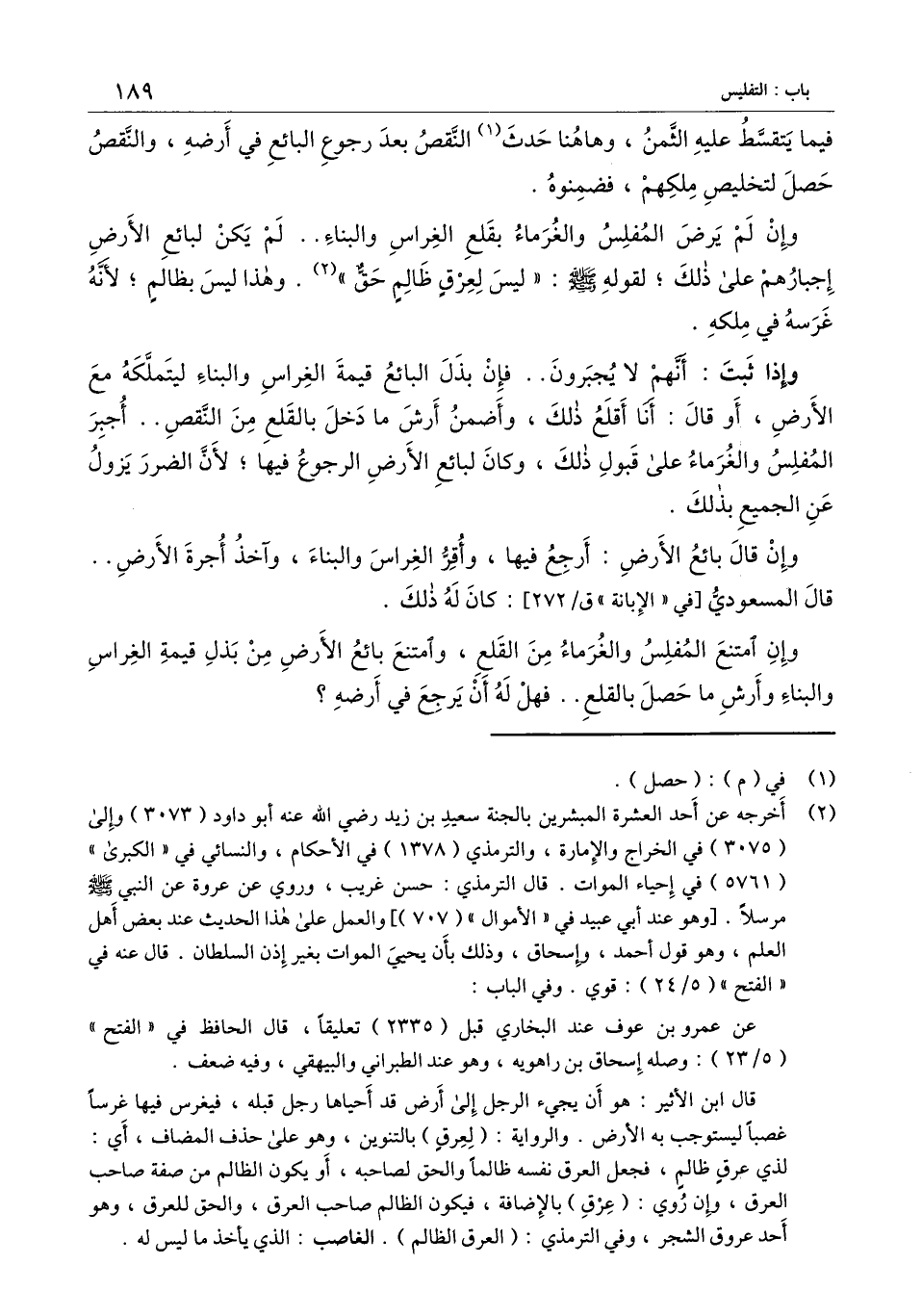 وإن لم يرض المفلس والغرماء بقلع الغراس والبناء.. لم يكن لبائع الأرض إجبارهم على ذلك؛ لقوله - صَلَّى اللَّهُ عَلَيْهِ وَسَلَّمَ -: «ليس لعرق ظالم حق» . وهذا ليس بظالم؛ لأنه غرسه في ملكه.