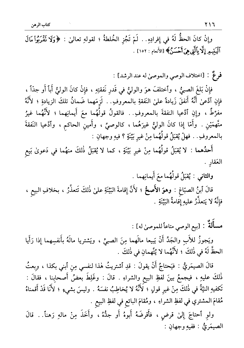 [فرع: اختلاف الوصي والموصى له عند الرشد]