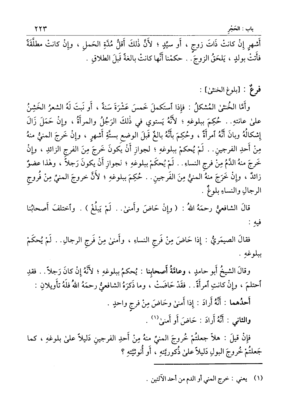 فقال الصيمري: إذا حاض من فرج النساء، وأمنى من فرج الرجال.. لم يحكم ببلوغه.