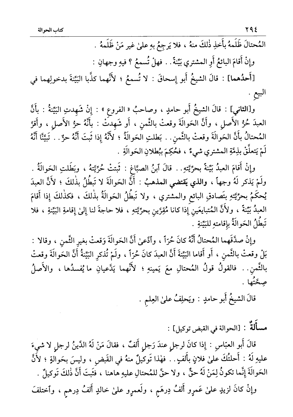[والثاني] : قال الشيخ أبو حامد، وصاحب " الفروع ": إن شهدت البينة بأن العبد حر الأصل، وأن الحوالة وقعت بالثمن، أو شهدت بأنه حر الأصل، وأقر المحتال بأن الحوالة وقعت بالثمن. بطلت الحوالة؛ لأنه إذا ثبت أنه حر.. تبينا أنه لم يتعلق بذمة المشتري شيء، فحكم ببطلان الحوالة.