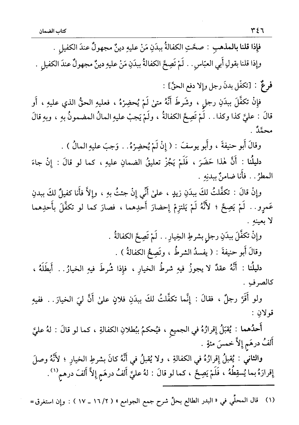 دليلنا: أن هذا حضر، فلم يجز تعليق الضمان عليه، كما لو قال: إن جاء المطر.. فأنا ضامن ببدنه.