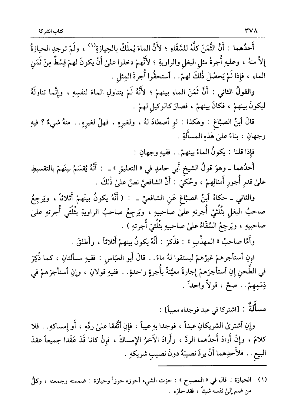 فإذا قلنا: يكون الماء بينهم: ففيه وجهان: