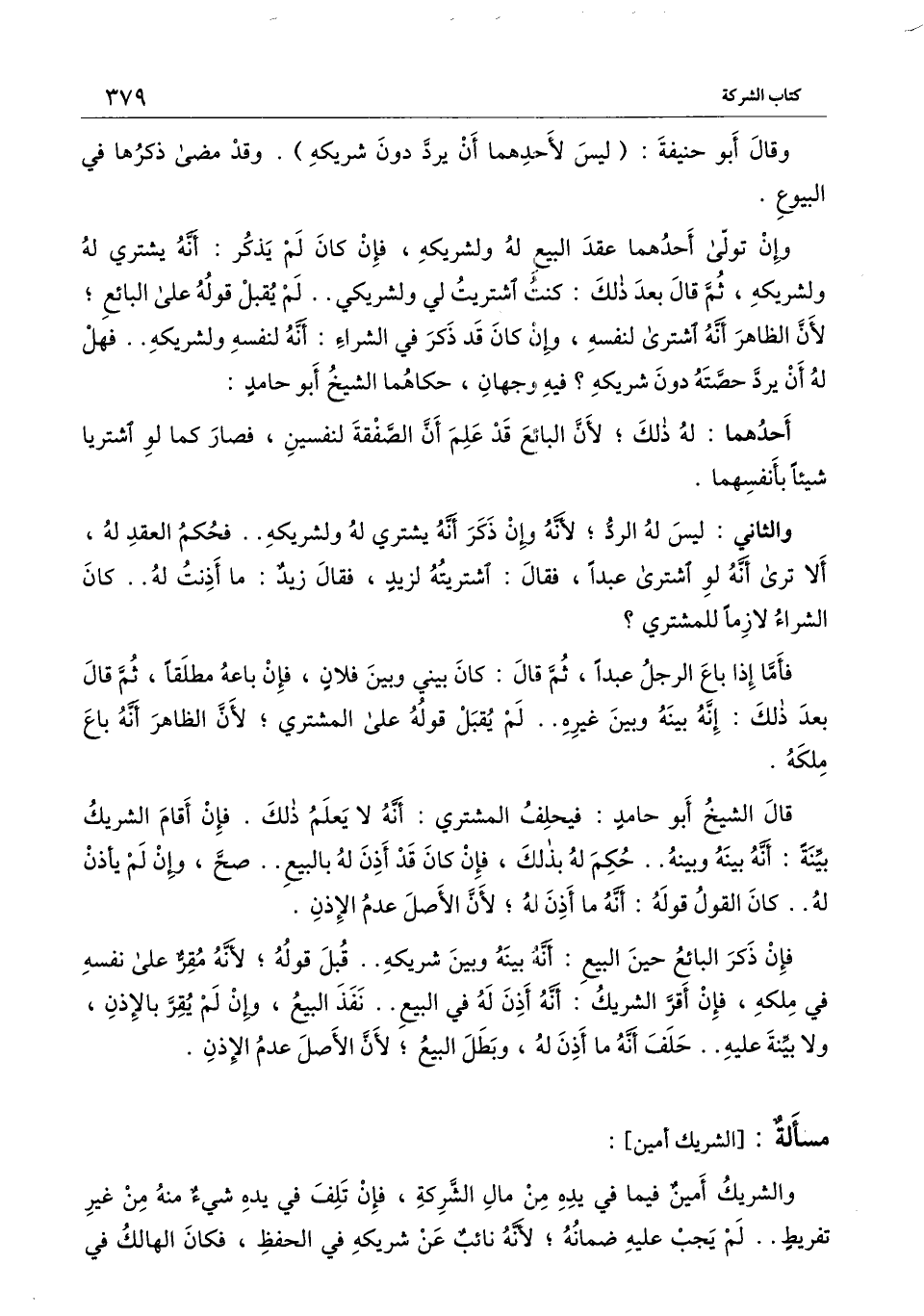 [مسألة: الشريك أمين]