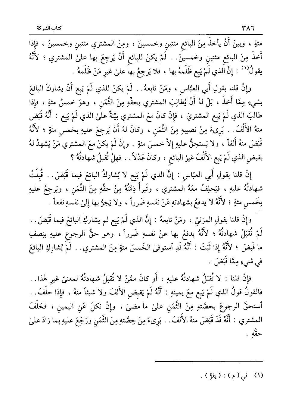وإن قلنا بقول أبي العباس، ومن تابعه.. لم يكن للذي لم يبع أن يشارك البائع بشيء مما أخذ، بل له أن يطالب المشتري بحقه من الثمن، وهو خمسمائة، فإذا طالب الذي لم يبع المشتري، فإن كان مع المشتري بينة على الذي لم يبع: أنه قبض منه الألف.. برئ من نصيبه من الثمن، وكان له أن يرجع عليه بخمسمائة؛ لأنه قبض منه ألفا، ولا يستحق عليه إلا خمسمائة وإن لم يكن مع المشتري من يشهد له بقبض الذي لم يبع الألف غير البائع، وكان عدلا.. فهل تقبل شهادته؟