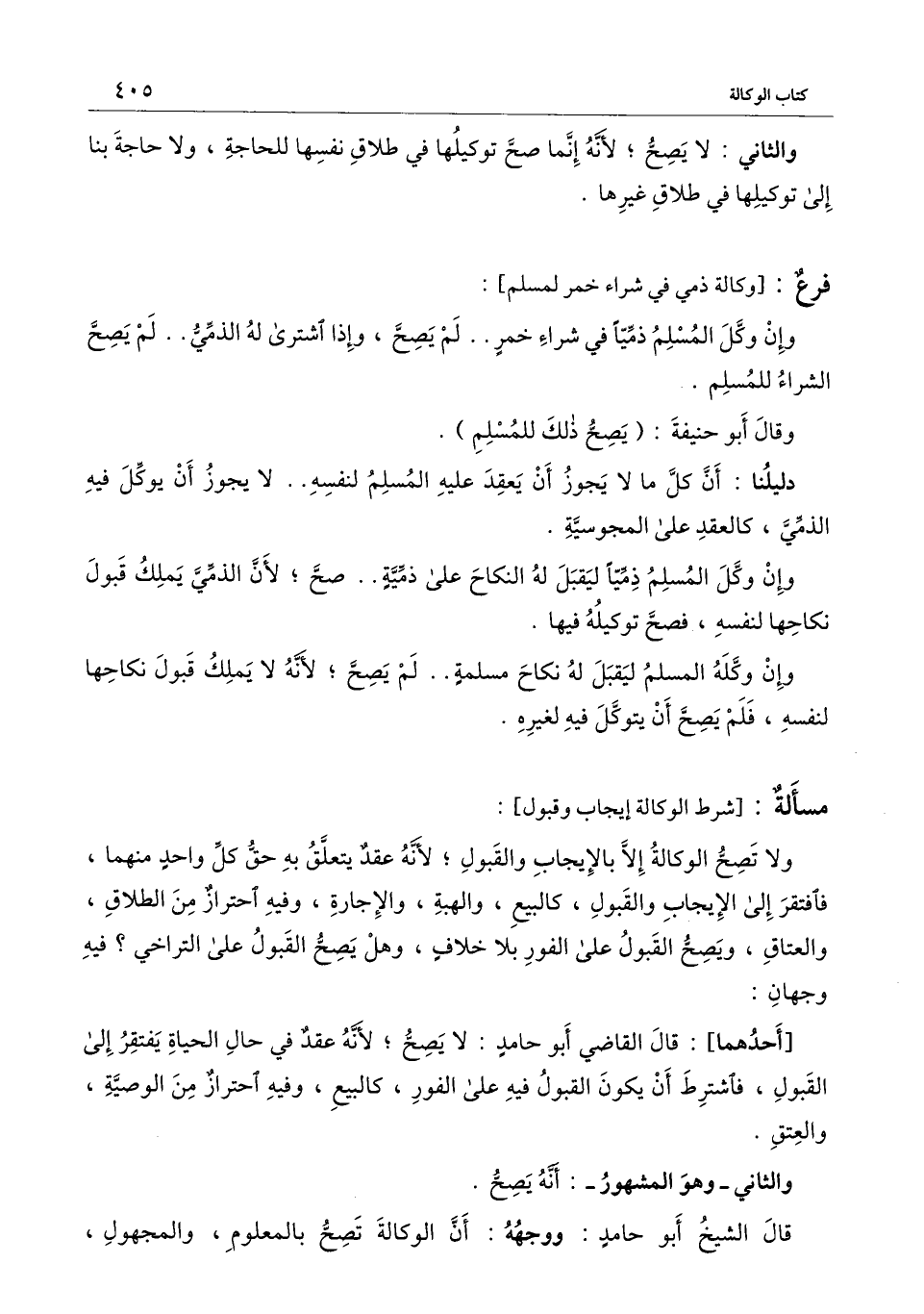 [مسألة: شرط الوكالة إيجاب وقبول]