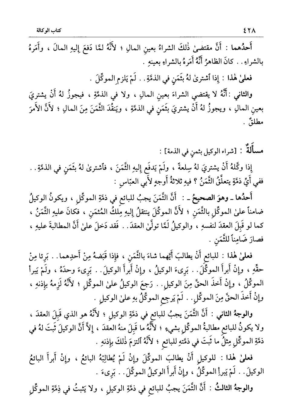 [مسألة: شراء الوكيل بثمن في الذمة]